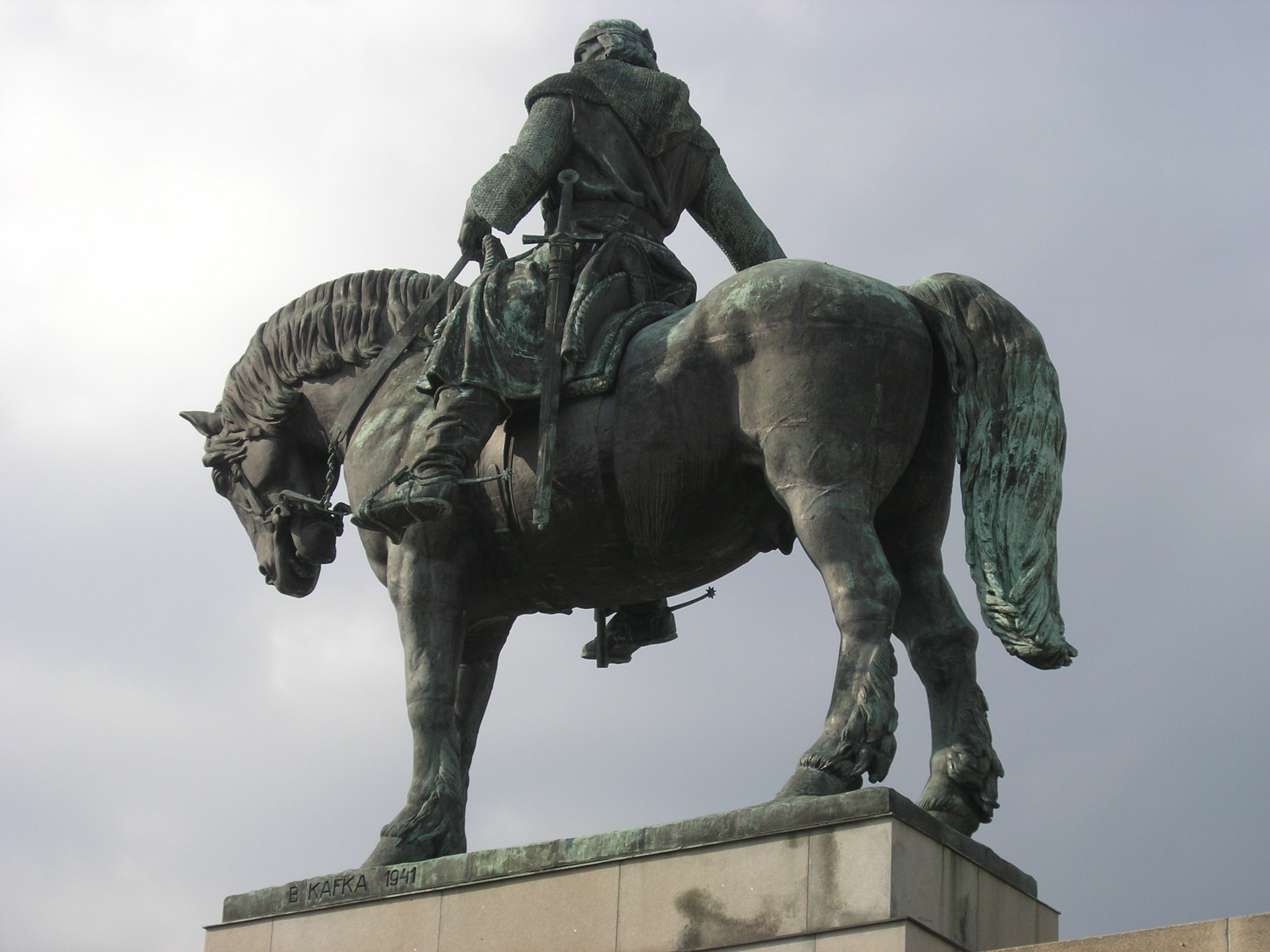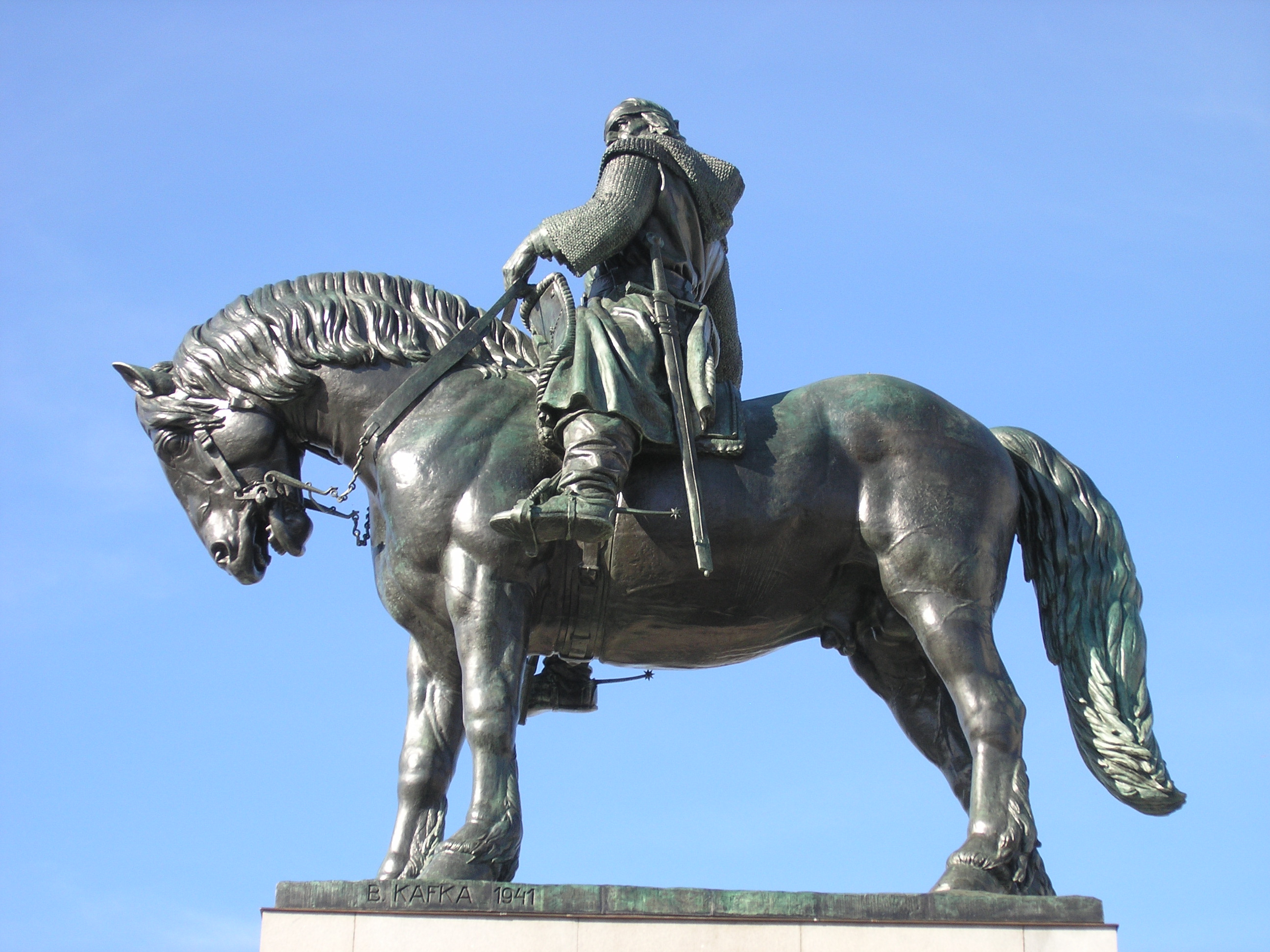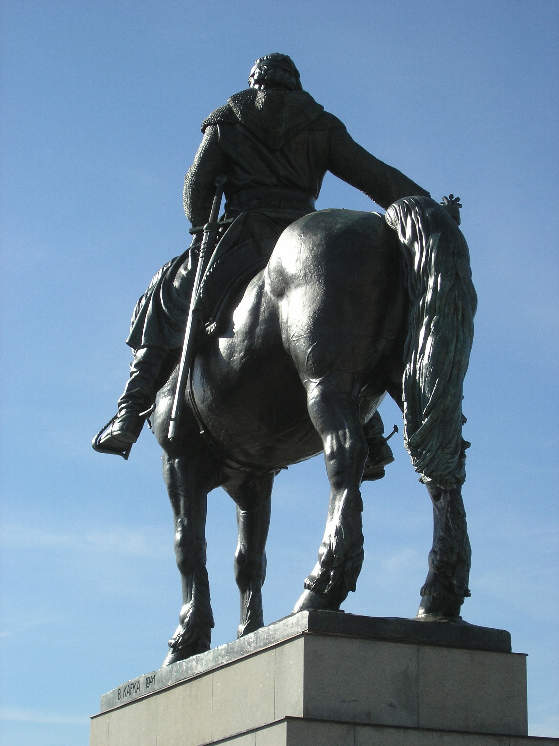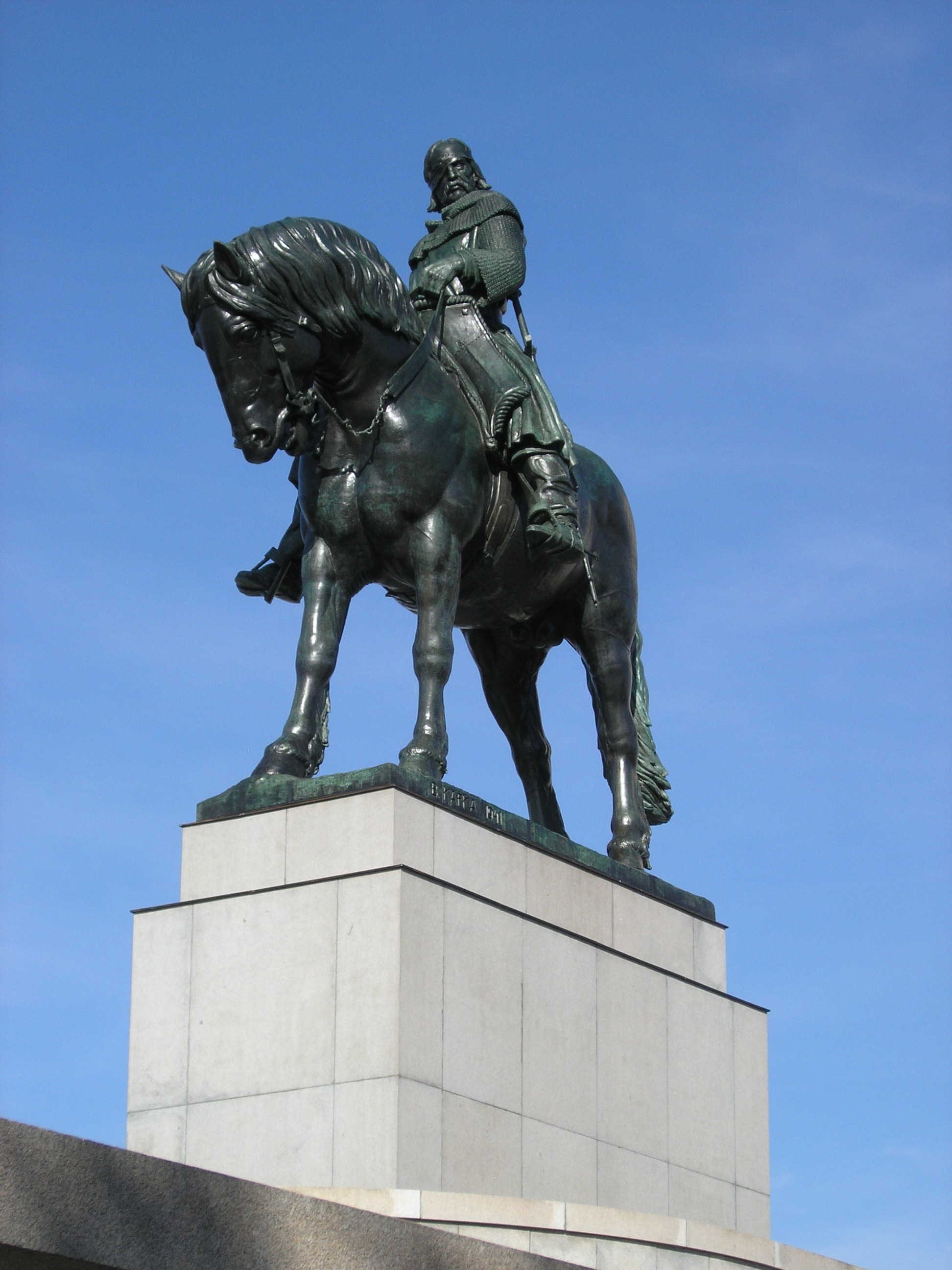 Před budovou Národního památníku na Vítkově byla dne 24. října 2011 slavnostně odhalena nově restaurovaná jezdecká socha Jana Žižky z Trocnova. Autorem bronzové sochy je ak. soch. prof. Bohumil Kafka, který na modelu sochy pracoval od roku 1930 až do své smrti v roce 1942. Socha byla odlita přibližně ve 40 dílech mezi léty 1947-49 ve slévárně V. Maška v Karlíně, k odhalení sochy však došlo teprve v roce 1950. Celková váha sochy i s plintem činí 16 200 kg. Stabilitu sochy zajišťuje výztuha tvořená železobetonovou konstrukcí kotvenou do železobetonové kostry soklu a podzemí. Socha je vysoká 9 m a dlouhá 9,5 m. Bronzové sousoší je osazeno na mohutném kamenném podstavci.